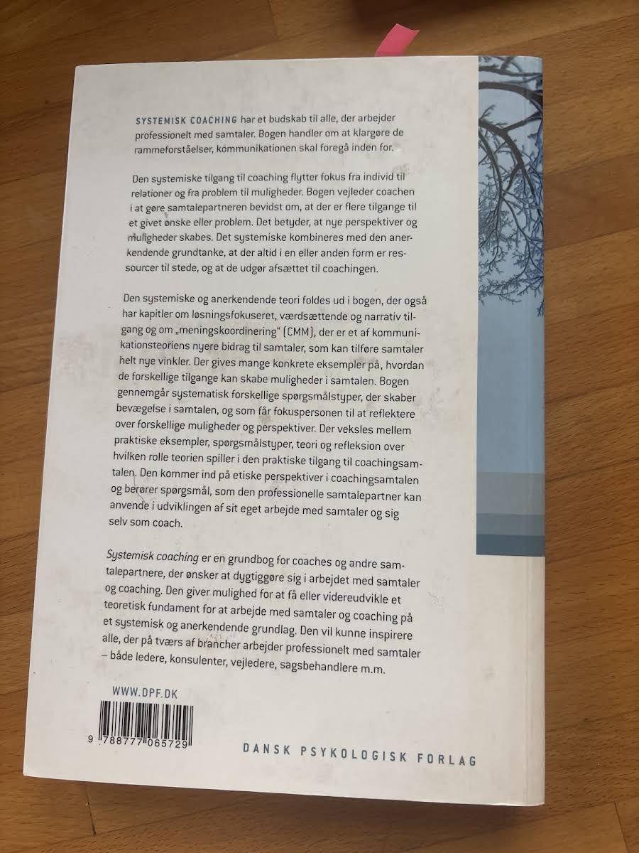 "Systemisk coaching – En grundbog" præsenterer en struktureret tilgang til coaching, der bygger på, at samtaler udvikles bedst inden for klare rammer og forståelser. Med udgangspunkt i den systemiske metode flyttes fokus fra individets udfordringer til relationernes potentiale, så nye perspektiver og muligheder træder frem. Bogen understreger, at coachens rolle er at gøre samtaleparten bevidst om de mange tilgange, der åbner for alternative løsninger. Gennem en kombination af systemisk og anerkendende teori illustreres, hvordan ressourcerne allerede er til stede, og hvordan de kan udnyttes i praksis. Med konkrete eksempler og en systematisk gennemgang af forskellige spørgsmålstyper får læseren redskaber til at skabe bevægelse og refleksion i samtalen. Desuden introduceres elementer fra løsningsfokuseret, værdsættende og narrativ coaching samt "meningskoordinering" (CMM – Coordinated Management of Meaning) som nyskabende tiltag i kommunikationsteorien. Som en grundbog for coachere og andre professionelle, der arbejder med samtaler, tilbyder denne bog inspirerende indsigter og praktiske redskaber til at udvikle en dybere forståelse af samtalens mange facetter.