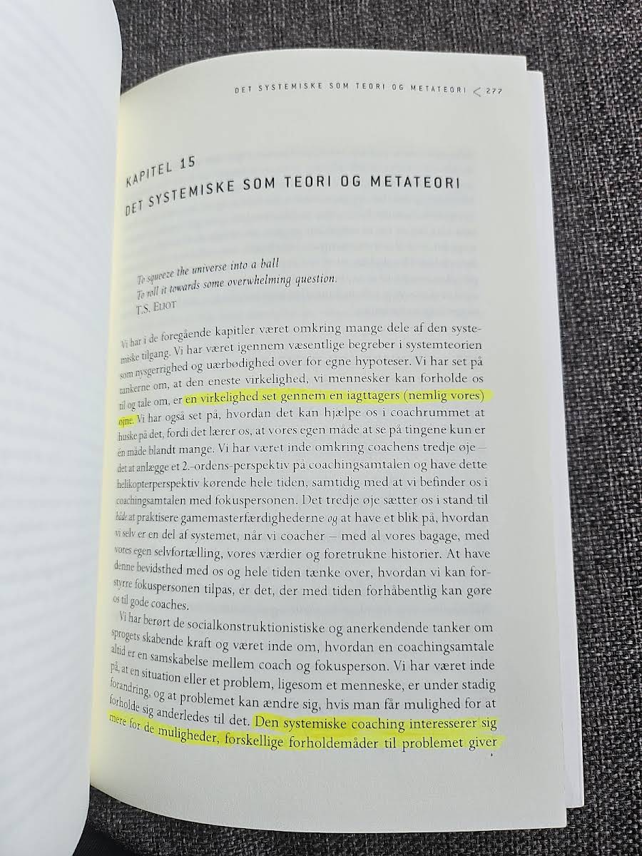 "Systemisk coaching – En grundbog" præsenterer en struktureret tilgang til coaching, der bygger på, at samtaler udvikles bedst inden for klare rammer og forståelser. Med udgangspunkt i den systemiske metode flyttes fokus fra individets udfordringer til relationernes potentiale, så nye perspektiver og muligheder træder frem. Bogen understreger, at coachens rolle er at gøre samtaleparten bevidst om de mange tilgange, der åbner for alternative løsninger. Gennem en kombination af systemisk og anerkendende teori illustreres, hvordan ressourcerne allerede er til stede, og hvordan de kan udnyttes i praksis. Med konkrete eksempler og en systematisk gennemgang af forskellige spørgsmålstyper får læseren redskaber til at skabe bevægelse og refleksion i samtalen. Desuden introduceres elementer fra løsningsfokuseret, værdsættende og narrativ coaching samt "meningskoordinering" (CMM – Coordinated Management of Meaning) som nyskabende tiltag i kommunikationsteorien. Som en grundbog for coachere og andre professionelle, der arbejder med samtaler, tilbyder denne bog inspirerende indsigter og praktiske redskaber til at udvikle en dybere forståelse af samtalens mange facetter.