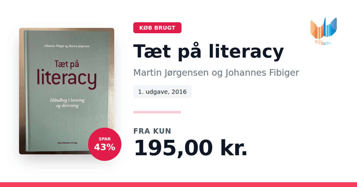 Lige nu kan du købe "Tæt på literacy" af Martin Jørgensen og Johannes Fibiger til kun 195,00 kr. Du sparer hele 43% af nyprisen! Bogen du ser her er brugt, og i perfekt stand. Vi har i øjeblikket kun et enkelt eksemplar til salg af "Tæt på literacy", så slå til mens du kan!