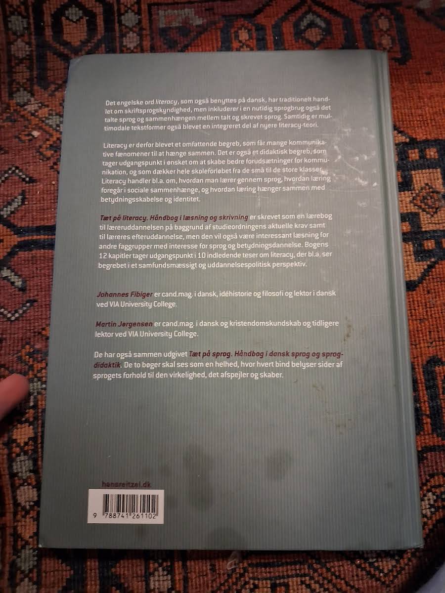 Tæt på literacy udforsker det moderne begreb literacy, der ikke alene omfatter evnen til at læse og skrive, men også den sammenhæng, der skabes mellem talt og skrevet sprog. I takt med at multimodale tekstformer er blevet uundværlige, fremstår literacy som et centralt fænomen i forståelsen af, hvordan sprog forbinder kommunikation, læring og identitetsdannelse. Med sine 12 kapitler og 10 grundteser tilbyder bogen et didaktisk værktøj, der understøtter både læreruddannelse og læreres efteruddannelse. Den præsenterer et bredt perspektiv, hvor literacy ses ud fra samfundsmæssige og uddannelsespolitiske linser, og giver dermed et solidt fundament for pædagogisk praksis og refleksion over sprogbrug. Martin Jørgensen og Johannes Fibiger, med deres baggrund i danskfag og pædagogik, leverer en inspirerende og nuanceret fremstilling af, hvordan literacy kan fremme forståelsen af sprogets rolle i skabelsen af mening i hverdagen. Tæt på literacy er dermed en alsidig ressource for alle, der ønsker at sætte sig ind i sprogets mange facetter og dets betydning for læring og kommunikation.