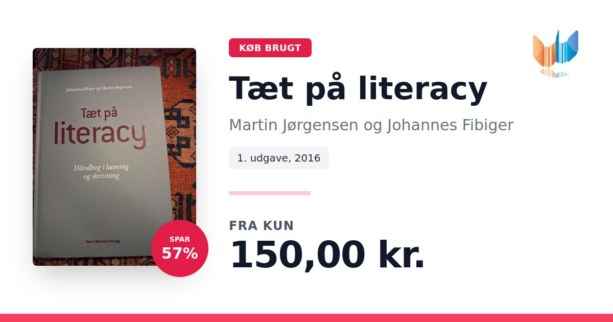 Lige nu kan du købe "Tæt på literacy" af Martin Jørgensen og Johannes Fibiger til kun 150,00 kr. Du sparer hele 57% af nyprisen! Bogen du ser her er brugt, og i slidt stand. Vi har i øjeblikket 2 eksemplarer til salg af "Tæt på literacy", så husk at se de forskellige udgaver.