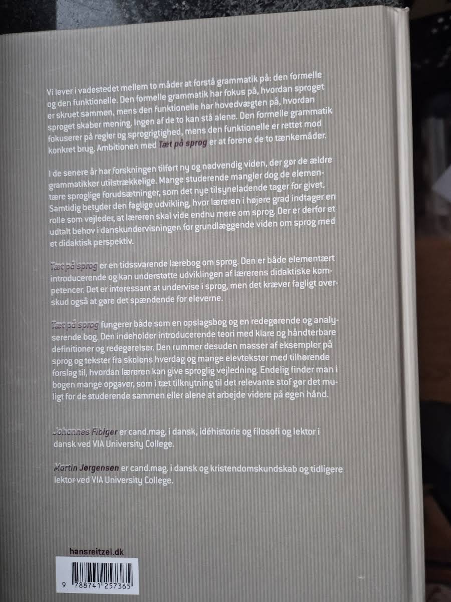 Tæt på sprog er en moderne og alsidig lærebog, der dykker ned i sprog og sprogdidaktik på en måde, som både introducerer og udfordrer de kommende lærere. Med klare definitioner, grundige teoribeskrivelser og illustrative eksempler, bliver komplekse begreber let tilgængelige og handlingsorienterede for undervisningen. Bogen er designet til at styrke de didaktiske kompetencer, så underviseren bedre kan engagere eleverne i sprogfaget. Med en praktisk tilgang til teori, opgaver til individuel og gruppebaseret arbejde samt eksempler fra skolens hverdag, tilbyder Martin Jørgensen og Johannes Fibiger et solidt redskab til både undervisning og refleksion.