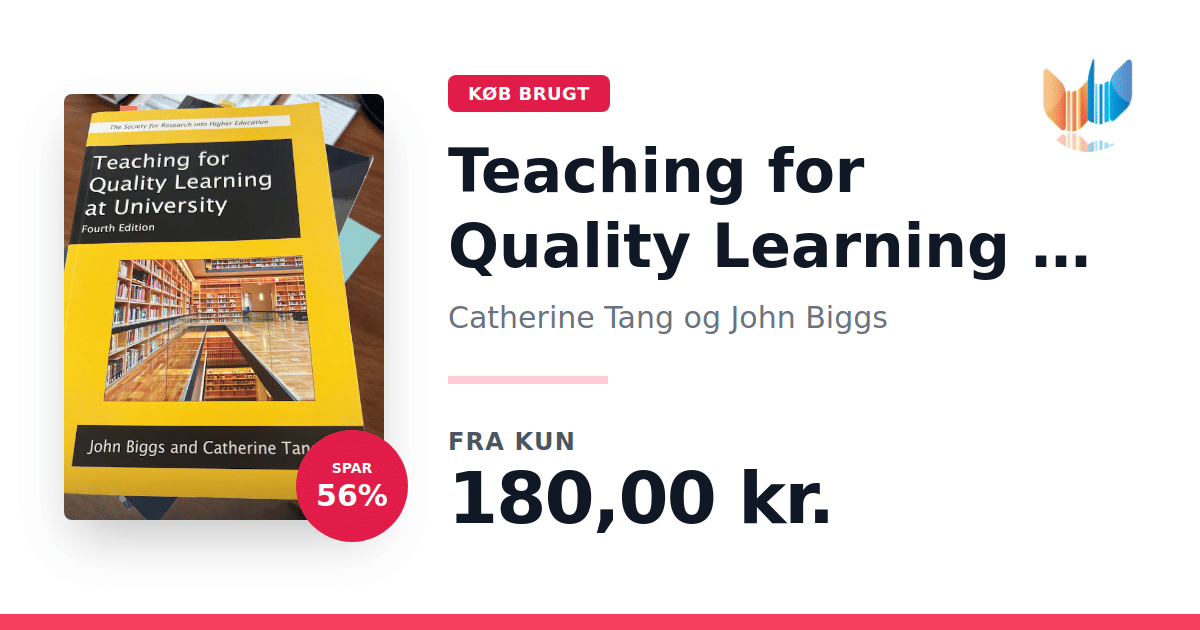 Teaching for Quality Learning at University: What the Student Does af Catherine Tang og John Biggs er nu i sin 4. udgave (2011). Denne paperback fra Open University Press præsenterer et samlet perspektiv på universitetsundervisning, der bygger på solid forskning og teori, kombineret med konkrete råd til både nye og erfarne undervisere. Bogen introducerer begrebet konstruktiv alignment som grundlaget for outcomes-baseret læring. Metoden går ud på først at fastlægge ønskede læringsmål, herefter planlægge undervisnings- og læringsaktiviteter, der støtter disse mål, og til sidst vurdere, i hvor høj grad de er opnået. Hvert kapitel indeholder praktiske opgaver og "how-to" vejledninger, der guider læseren gennem implementeringen af konstruktiv alignment i egen undervisningspraksis. Den nye 4. udgave bygger på forfatternes erfaringer fra konsulentarbejde i Australien, Hong Kong, Irland og Malaysia og omfatter et bredt udsnit af fagområder og undervisningskontekster. En ny sektion om evaluering af konstruktiv alignment viser, hvordan metoden kan anvendes som global ramme for kvalitetssikring og -udvikling af undervisning og bedømmelse. Bogen er uundværlig for undervisere, undervisningsudviklere og administratorer, der ønsker at hæve kvaliteten af undervisning og læring på universiteter.