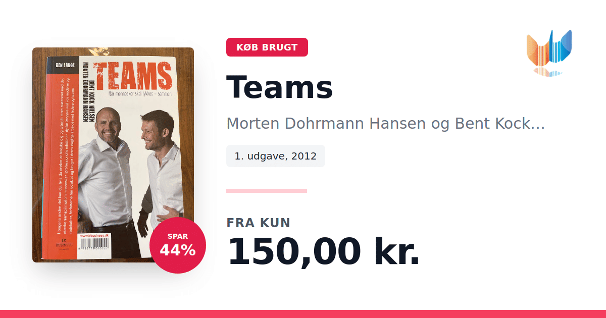 Lige nu kan du købe "Teams" af Morten Dohrmann Hansen og Bent Kock Nielsen til kun 150,00 kr. Du sparer hele 44% af nyprisen! Bogen du ser her er brugt, og i perfekt stand. Vi har i øjeblikket 2 eksemplarer til salg af "Teams", så husk at se de forskellige udgaver.