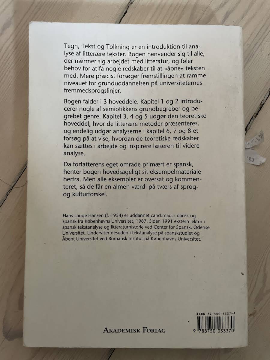 Hans Lauge Hansens "Tegn, tekst og tolkning" byder på en lettilgængelig introduktion til analysen af litterære tekster. Med et klart fokus på at give læseren redskaber til at åbne op for tekstens mange lag, henvender bogen sig til både studerende og alle med en interesse for dybere fortolkning. I andet udgave fra 2001 præsenteres tekstanalysens metoder på et niveau, der passer til grunduddannelsen, særligt på universiteters fremmedsprogslinjer. Eksempelmaterialet hentes primært fra den spanske kulturarv, men alle tekster er oversat og nøje kommenteret, hvilket gør indholdet anvendeligt på tværs af sprog og kulturelle kontekster. Med sine 310 sider er "Tegn, tekst og tolkning" en uundværlig guide til alle, der ønsker at fordybe sig i literær analyse og opnå en rigere forståelse af tekstens underliggende betydninger.