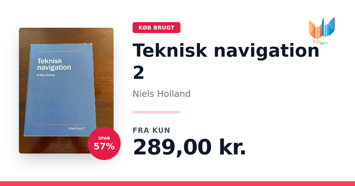 Lige nu kan du købe "Teknisk navigation 2" af Niels Holland til kun 289,00 kr. Du sparer hele 57% af nyprisen! Bogen du ser her er brugt, og i god stand. Vi har i øjeblikket kun et enkelt eksemplar til salg af "Teknisk navigation 2", så slå til mens du kan!
