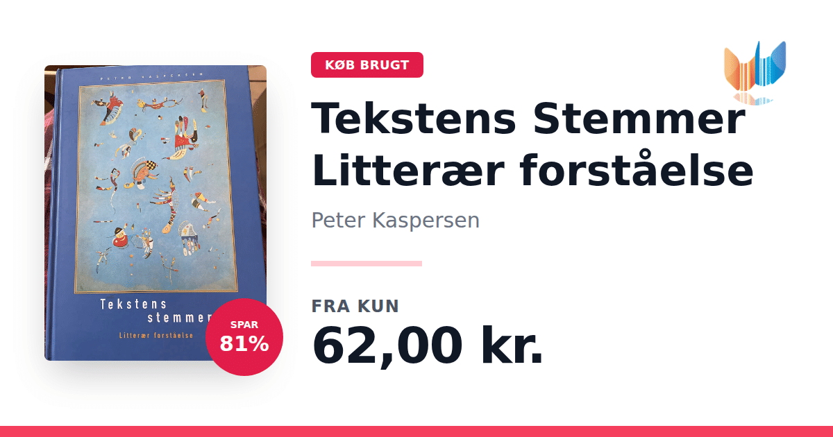 Lige nu kan du købe "Tekstens Stemmer Litterær forståelse" af Peter Kaspersen til kun 62,00 kr. Du sparer hele 81% af nyprisen! Bogen du ser her er brugt, og i god stand. Vi har i øjeblikket kun et enkelt eksemplar til salg af "Tekstens Stemmer Litterær forståelse", så slå til mens du kan!