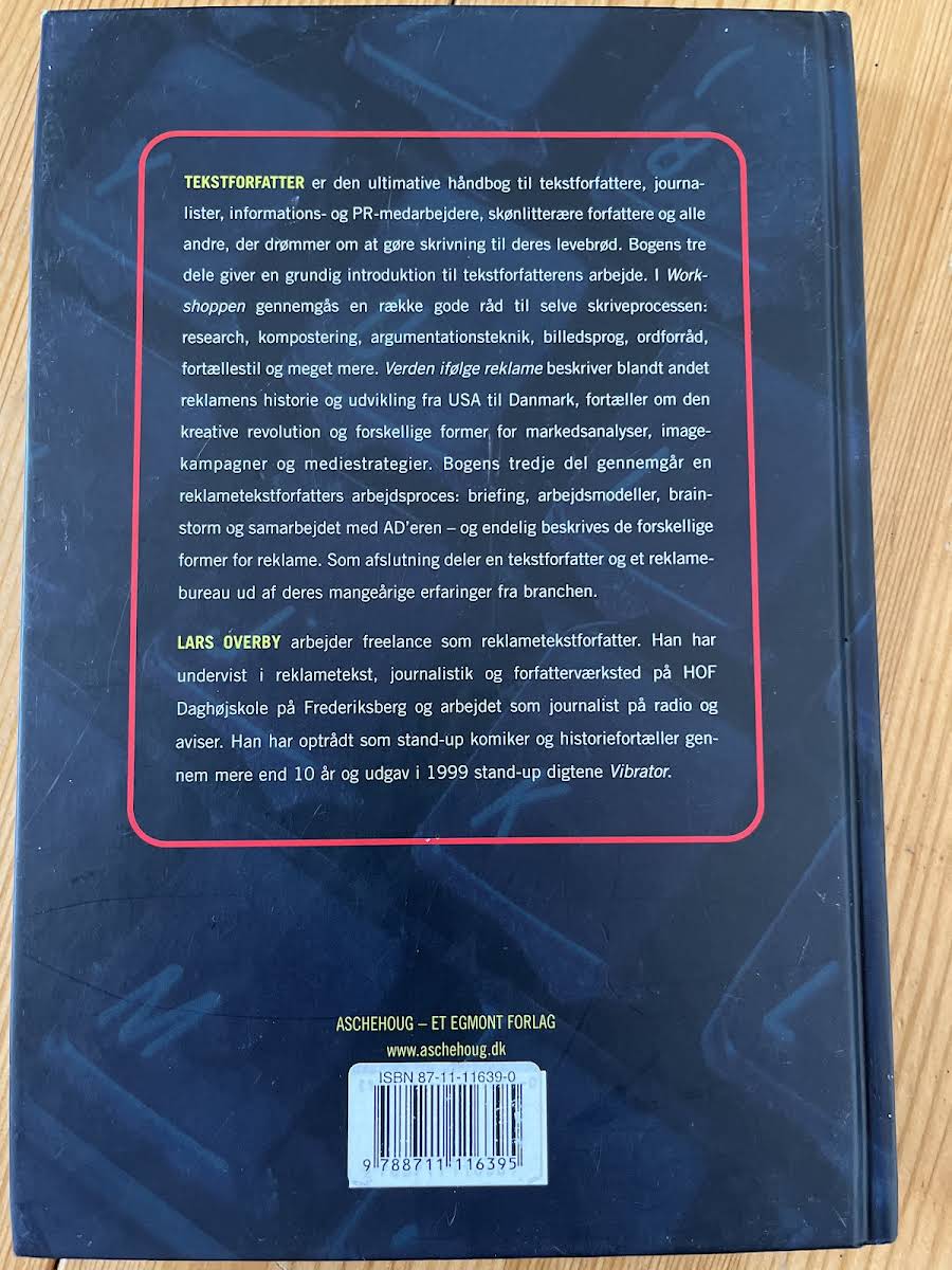 Tekstforfatter – en håndbog af Lars Overby er en uundværlig guide for alle, der ønsker at udforske verdenen inden for reklame og skriftlig formidling. Denne håndbog henvender sig både til kommende tekstforfattere, journalistaspiranter og informationsmedarbejdere, der vil lære kunsten at skrive med overbevisning og kreativitet. Med en klar og tilgængelig formidling giver bogen et grundlag for at forstå reklamens dynamik og de krav, der stilles i branchen. Udgivet i 2003 i en førsteudgave som en robust hardcover på 239 sider, byder Tekstforfatter på praktiske værktøjer og inspirerende eksempler, der kan styrke din evne til at kommunikere skarpt og målrettet.