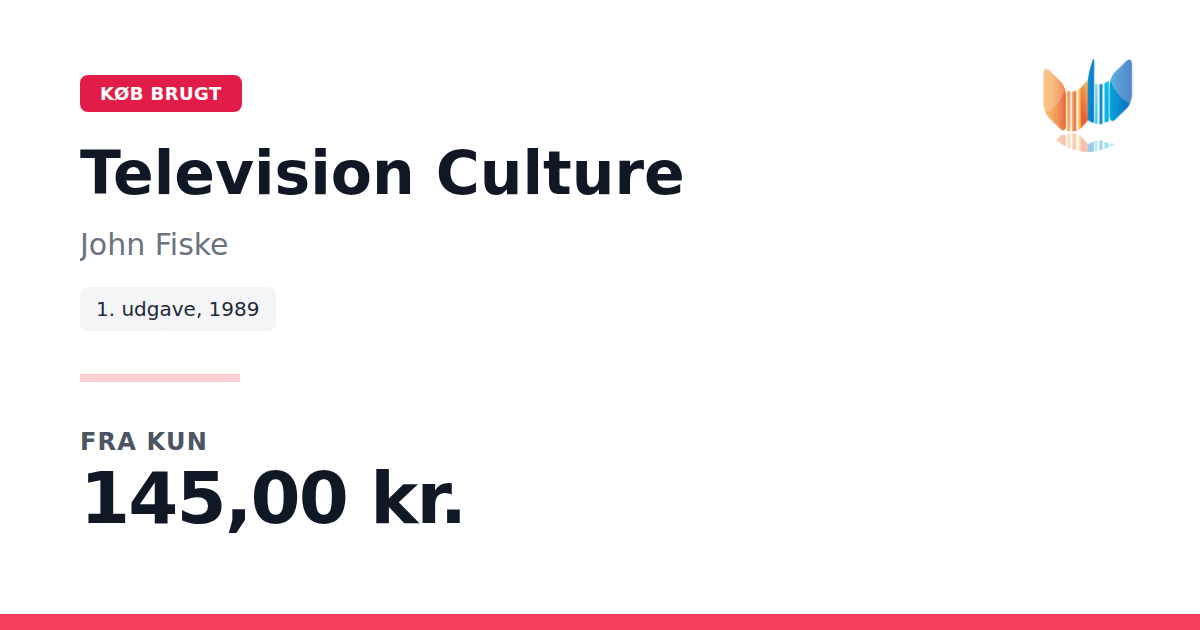 Lige nu kan du købe "Television Culture" af John Fiske til kun 145,00 kr. Bogen du ser her er brugt, og i perfekt stand. Vi har i øjeblikket 2 eksemplarer til salg af "Television Culture", så husk at se de forskellige udgaver.