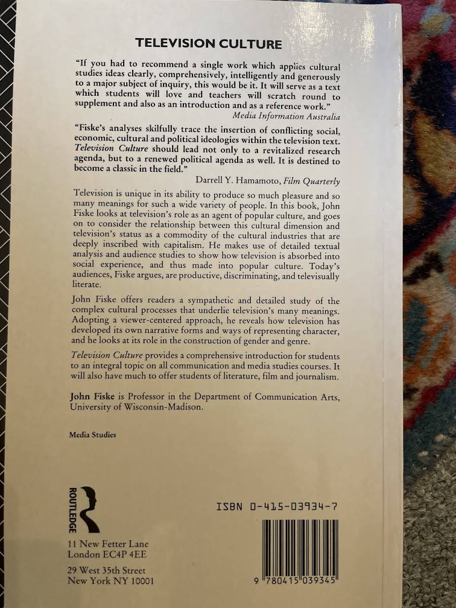 Lige nu kan du købe "Television Culture" af John Fiske til kun 80,00 kr. Bogen du ser her er brugt, og i perfekt stand. Vi har i øjeblikket 2 eksemplarer til salg af "Television Culture", så husk at se de forskellige udgaver.