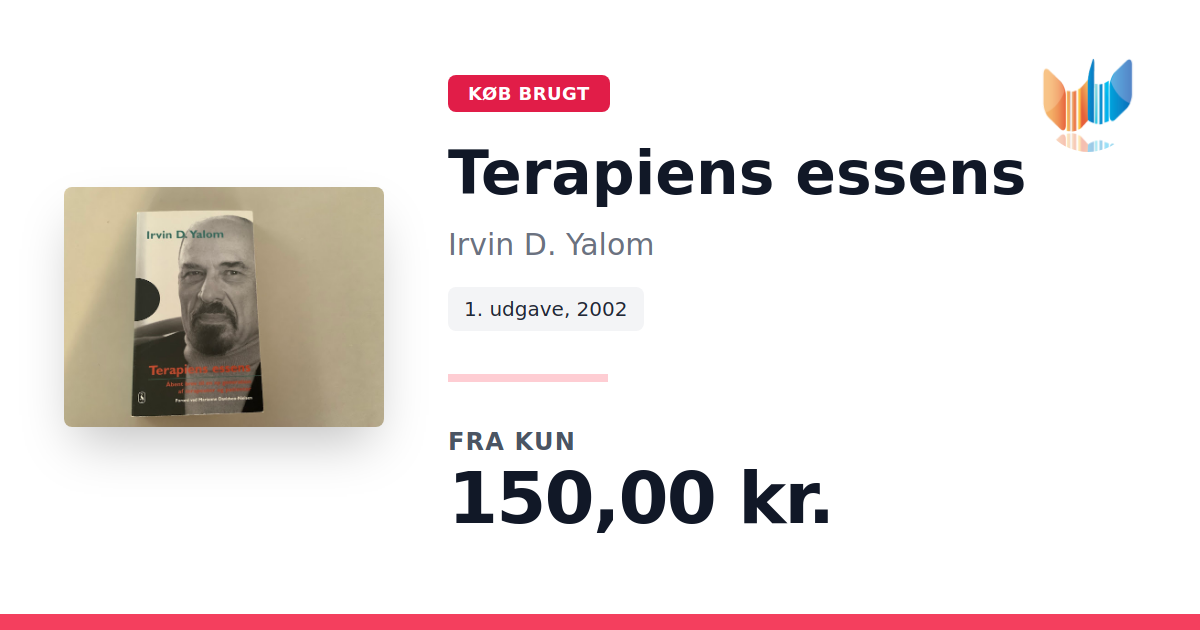 Lige nu kan du købe "Terapiens essens" af Irvin D. Yalom til kun 150,00 kr. Bogen du ser her er brugt, og i perfekt stand. Vi har i øjeblikket kun et enkelt eksemplar til salg af "Terapiens essens", så slå til mens du kan!