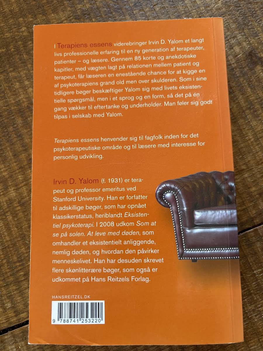 Irvin D. Yalom, den verdenskendte psykoterapeut, deler sin mangeårige erfaring i "Terapiens essens". Med en klar og nærværende pen beskriver han, hvordan den tætte relation mellem terapeut og patient kan åbne op for livets store spørgsmål og muligheder. I 85 ultrakorte og anekdotiske kapitler formår Yalom at formidle både terapiens fordele og udfordringer på en måde, der både styrker den professionelle praksis og giver patienten nye perspektiver. Hvert kapitel er en lille indsigt i den visdom, som opstår gennem et liv dedikeret til psykoterapi. I denne 2. udgave, udgivet af Hans Reitzels Forlag i 2009 og præsenteret i paperback med 312 sider, opdaterer Yalom sine refleksioner og bringer et personligt præg med nye efterord og en samtale om sin opvækst og baggrund. Bogen er et uvurderligt værktøj for alle, der søger en dybere forståelse af terapiens essens.