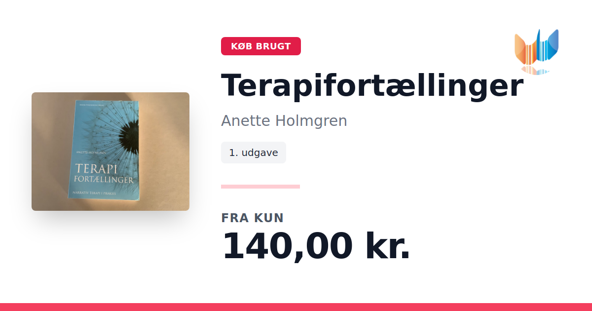Lige nu kan du købe "Terapifortællinger" af Anette Holmgren til kun 140,00 kr. Bogen du ser her er brugt, og i perfekt stand. Vi har i øjeblikket kun et enkelt eksemplar til salg af "Terapifortællinger", så slå til mens du kan!