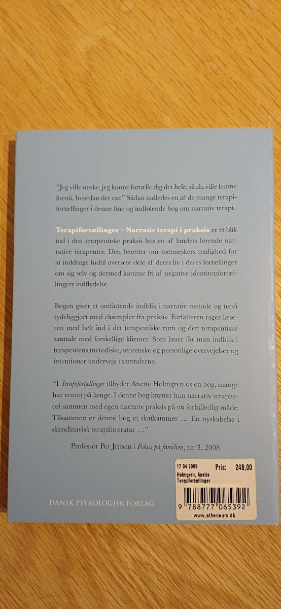 I "Terapifortællinger" får læseren et nærgående indblik i, hvordan narrativ terapi omsætter menneskers livshistorier til et redskab for forandring. Bogen følger terapeutiske samtaler, hvor klienternes nye perspektiver og muligheder for at omskrive negative identitetsfortællinger kommer tydeligt til udtryk. Anette Holmgren præsenterer med stor pedagogisk sans både de metodiske og teoretiske overvejelser bag den narrative tilgang. Med et sprog, der både er levende og fagligt solidt, illustrerer bogen, hvordan terapeutens arbejde baner vejen for en dybere forståelse af individets historie. "Terapifortællinger" henvender sig til såvel professionelle og studerende som alle med en generel interesse for, hvordan fortællinger kan påvirke og forme vores liv.