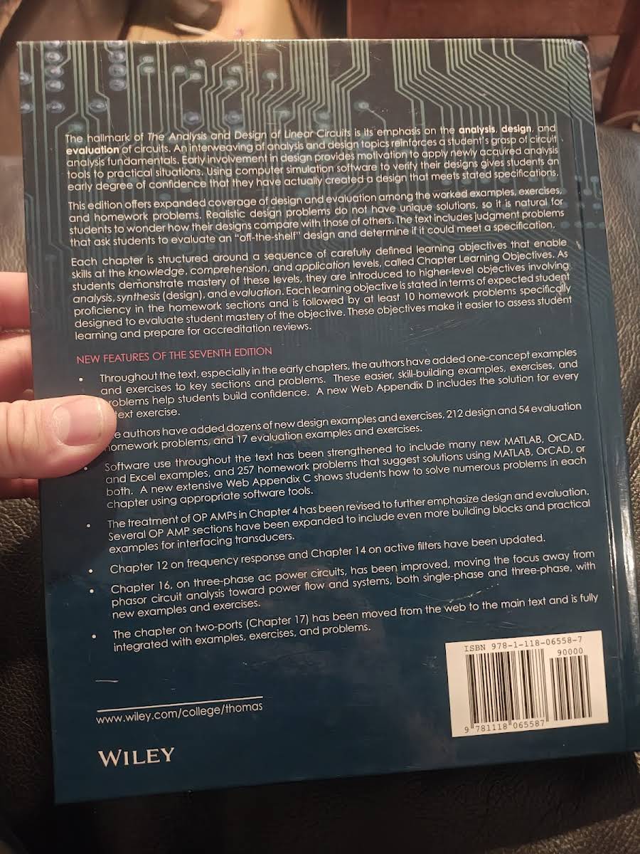 Den 7. udgave af The Analysis and Design of Linear Circuits bygger videre på en solid tradition for grundig gennemgang af lineære kredsløb og tilbyder et væld af nye opdateringer og didaktiske forbedringer. Denne udgave fra 2012 indeholder flere eksempler, øvelser og tilhørende problemer, der styrker de studerendes forståelse og færdigheder. Særlige emner som Thévenin-ækvivalente kredsløb, nodal- og mesh-analyse, operationsforstærkerkredsløb og phasoranalyse er behandlet med ekstra fokus på praktisk anvendelse og systematisk problemløsning. For at understøtte undervisere og studerende er instruktørmaterialet (IM) udvidet med udførlige løsningsforslag til mange af bogens øvelser, mens sektionen om ABET-kriterier er opdateret i overensstemmelse med Criteria 2000. Løsningsmanualen (SM) er forbedret med detaljerede trin-for-trin-forklaringer og begrundelser, og hvor det er relevant, præsenteres løsninger også i MATLAB-format.