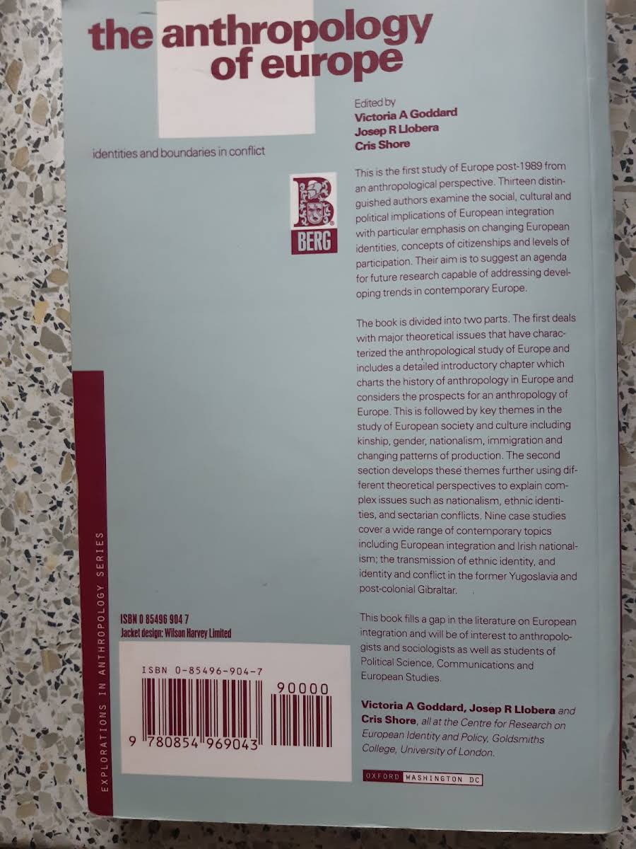 • The Anthropology of Europe, Cris Shore, Victoria A. Goddard, Josep R. Llobera, 9780854969043
