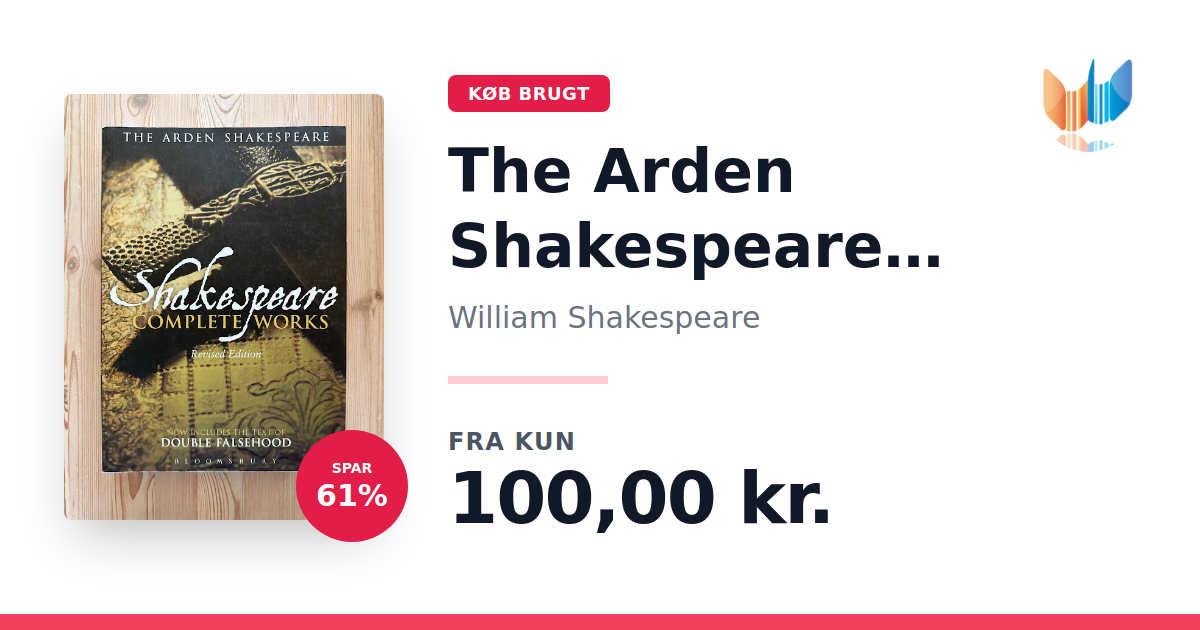 Lige nu kan du købe "The Arden Shakespeare Complete Works" af William Shakespeare til kun 100,00 kr. Du sparer hele 61% af nyprisen! Bogen du ser her er brugt, og i perfekt stand. Vi har i øjeblikket kun et enkelt eksemplar til salg af "The Arden Shakespeare Complete Works", så slå til mens du kan!
