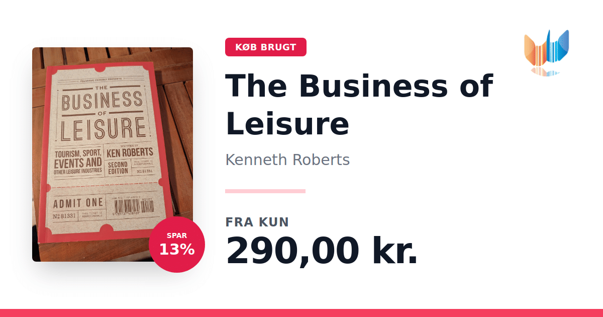 Lige nu kan du købe "The Business of Leisure" af Kenneth Roberts til kun 290,00 kr. Du sparer hele 13% af nyprisen! Bogen du ser her er brugt, og i perfekt stand. Vi har i øjeblikket 2 eksemplarer til salg af "The Business of Leisure", så husk at se de forskellige udgaver.