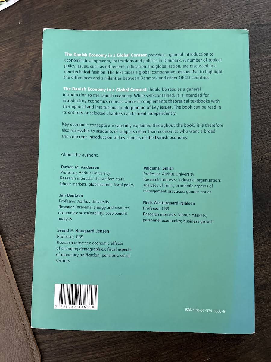The Danish Economy in a Global Context giver en letforståelig introduktion til de økonomiske udviklinger og institutioner i Danmark. Med sit fokus på emner som globalisering, pædagogik og pensionspolitik illustrerer bogen, hvordan danske økonomiske løsninger adskiller sig fra og minder om dem i andre OECD-lande. Den internationale komparative tilgang sætter den danske økonomi i et bredt perspektiv og understreger både de teoretiske og praktiske aspekter, der præger beslutningsprocesserne. Bogen er velegnet til både studerende af økonomi og andre fagområder, der søger en overordnet forståelse af den danske økonomi. Kapitelinddelingen gør det muligt enten at læse hele værket samlet eller dykke ned i enkelte emner, hvilket gør teksten alsidig i en undervisningssammenhæng. Gennem grundige forklaringer af centrale begreber og en nøje afbalanceret kombination af teori og empiri, bliver læseren præsenteret for en dybdegående analyse af Danmarks økonomiske struktur i en global kontekst.