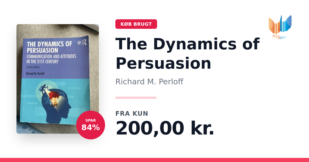 Lige nu kan du købe "The Dynamics of Persuasion" af Richard M. Perloff til kun 200,00 kr. Du sparer hele 84% af nyprisen! Bogen du ser her er brugt, og i god stand. Vi har i øjeblikket 3 eksemplarer til salg af "The Dynamics of Persuasion", så husk at se de forskellige udgaver.