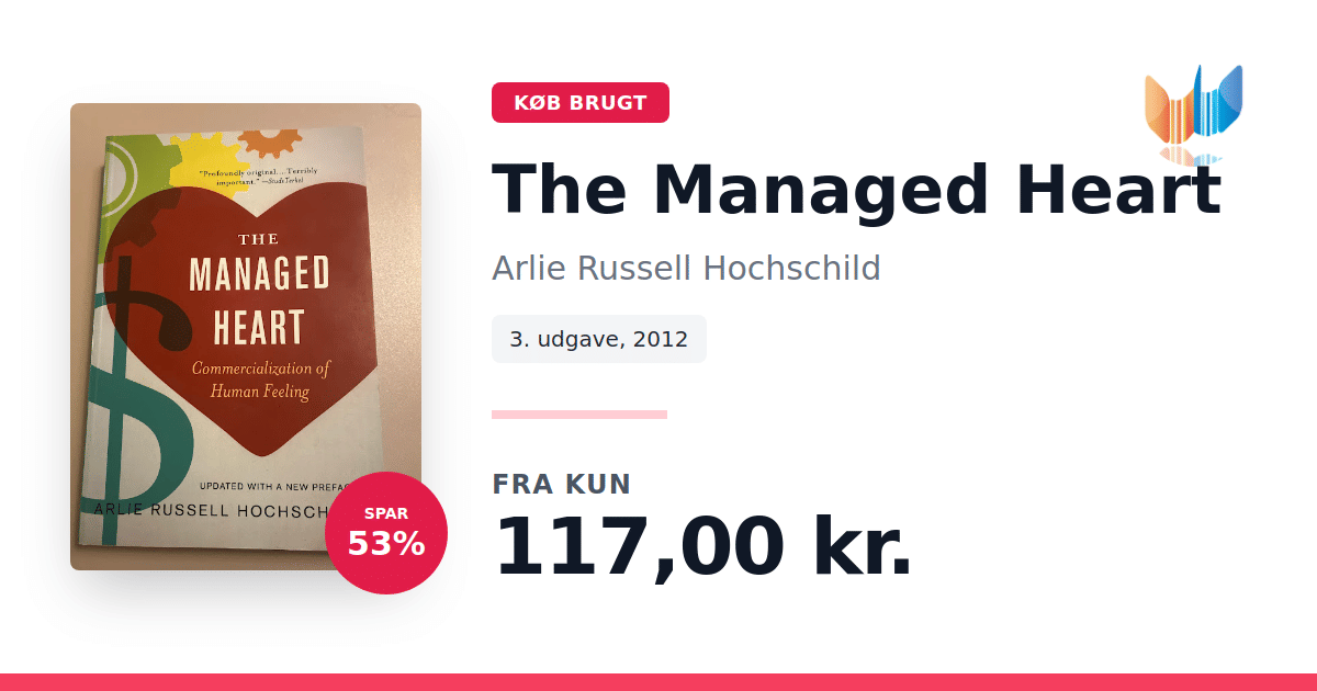Lige nu kan du købe "The Managed Heart" af Arlie Russell Hochschild til kun 117,00 kr. Du sparer hele 53% af nyprisen! Bogen du ser her er brugt, og i god stand. Vi har i øjeblikket kun et enkelt eksemplar til salg af "The Managed Heart", så slå til mens du kan!