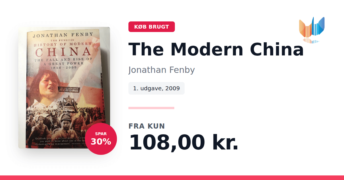 Lige nu kan du købe "The Modern China" af Jonathan Fenby til kun 108,00 kr. Du sparer hele 30% af nyprisen! Bogen du ser her er brugt, og i perfekt stand. Vi har i øjeblikket kun et enkelt eksemplar til salg af "The Modern China", så slå til mens du kan!