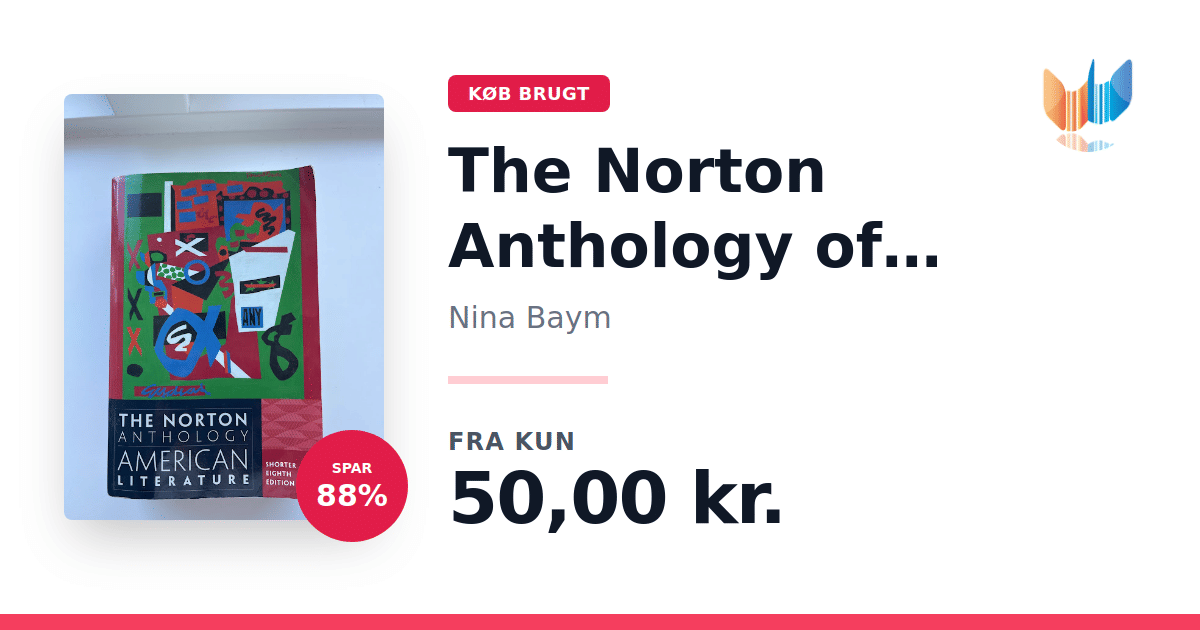 Lige nu kan du købe "The Norton Anthology of American Literature" af Nina Baym til kun 50,00 kr. Du sparer hele 88% af nyprisen! Bogen du ser her er brugt, og i god stand. Vi har i øjeblikket 2 eksemplarer til salg af "The Norton Anthology of American Literature", så husk at se de forskellige udgaver.