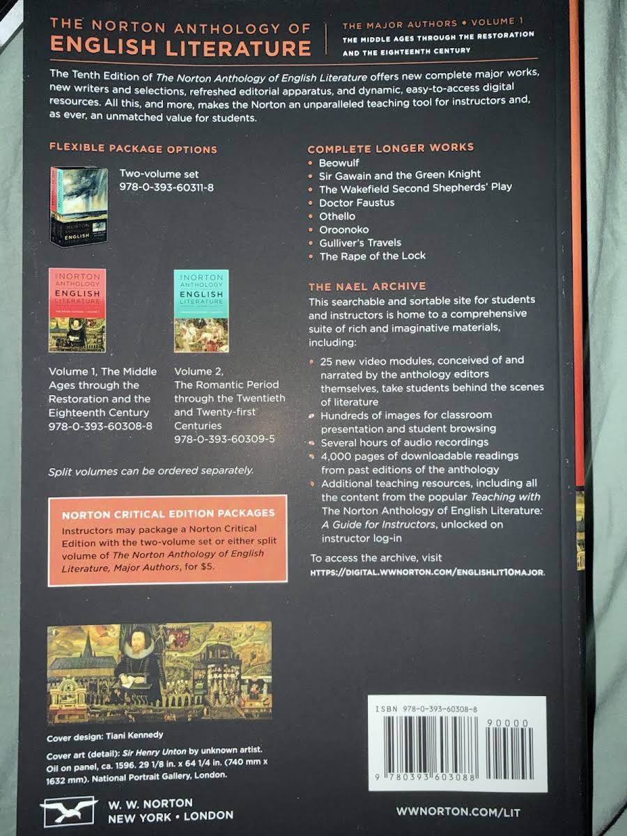 Den tiende udgave af Norton Anthology of English Literature: The Major Authors, Volume A er nu tilgængelig i en levende, opdateret udgave. Redigeret af Stephen Greenblatt samler denne paperbackantologi klassiske hovedværker side om side med nye, moderne stemmer og skaber et alsidigt og sammenhængende overblik over engelsk litteratur fra middelalder til i dag. Denne udgave byder på fuldstændige genudgivelser af centrale tekster samt introduktioner til aktuelle forfattere, der udfordrer og udvider kanoniske perspektiver. Hvert værk understøttes af nyskrevne indledninger og analytiske kommentarer, der guider læseren gennem litteraturens historiske og tematiske landskab. Foruden de trykte tekster indeholder antologien henvisninger til dynamiske digitale ressourcer, herunder interaktive værktøjer og onlinekommentarer. Disse supplementer gør det nemt for både studerende og undervisere at fordybe sig, diskutere og fortolke teksterne på nye måder. Med sine 1568 sider i praktisk paperbackformat udgør denne 10. udgave et uundværligt pædagogisk redskab og en enestående værdikilde for alle, der ønsker en dybdegående forståelse af de store stemmer i engelsk litteratur.
