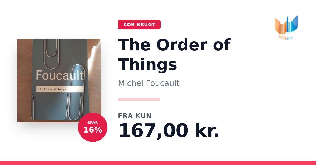 Lige nu kan du købe "The Order of Things" af Michel Foucault til kun 167,00 kr. Du sparer hele 16% af nyprisen! Bogen du ser her er brugt, og i perfekt stand. Vi har i øjeblikket kun et enkelt eksemplar til salg af "The Order of Things", så slå til mens du kan!