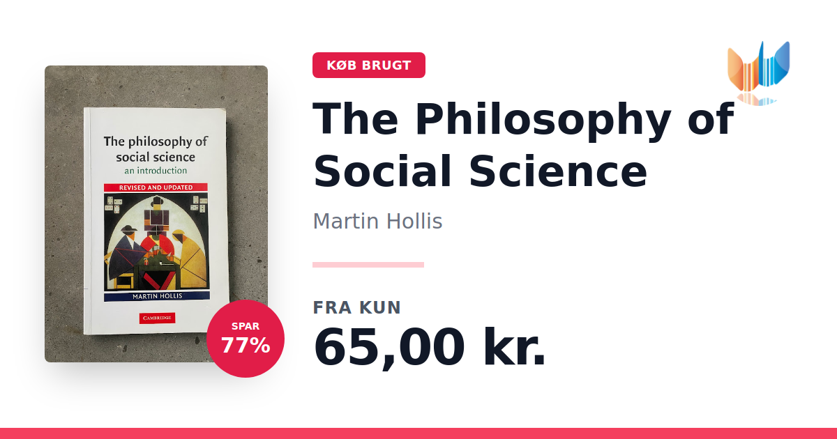 Lige nu kan du købe "The Philosophy of Social Science" af Martin Hollis til kun 65,00 kr. Du sparer hele 77% af nyprisen! Bogen du ser her er brugt, og i perfekt stand. Vi har i øjeblikket kun et enkelt eksemplar til salg af "The Philosophy of Social Science", så slå til mens du kan!