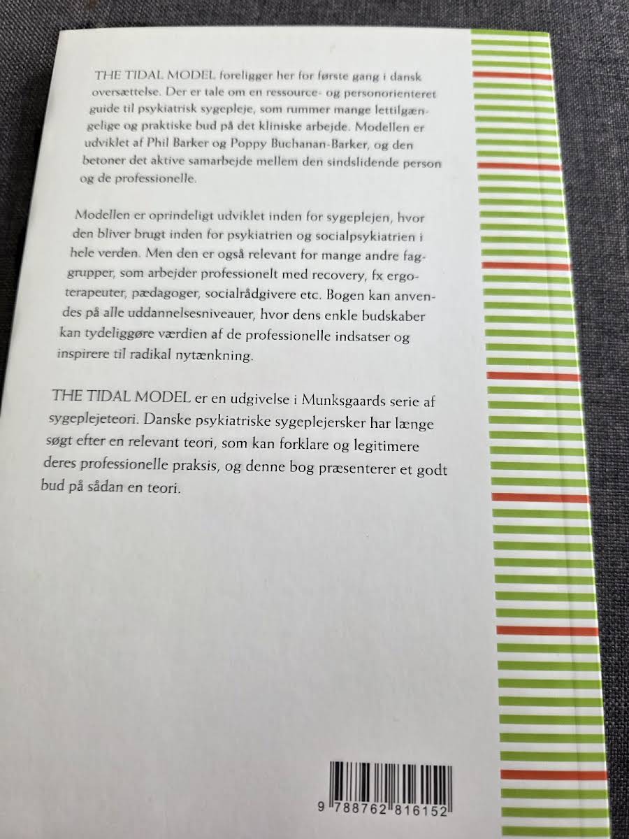 "The Tidal Model" præsenteres nu i dansk oversættelse og udgives som en let tilgængelig, person- og ressourceorienteret guide til psykiatrisk sygepleje. Bogen, skrevet af Phil Barker og Poppy Buchanan-Barker, understreger vigtigheden af et aktivt samarbejde mellem den sindslidende person og de professionelle, og den formidler en tilgang, som fornyer forståelsen af klinisk praksis. Modellen, der oprindeligt er udviklet inden for sygeplejen, henvender sig også til øvrige faggrupper, som eksempelvis ergoterapeuter, socialrådgivere og pædagoger, der arbejder med recovery. Med sine klare og lettilgængelige budskaber kan bogen inspirere til nye perspektiver og styrke den professionelle indsats på alle uddannelsesniveauer. Denne danske udgave er et værdifuldt redskab for alle, der ønsker en dybere forståelse af den terapeutiske praksis inden for psykiatrien.