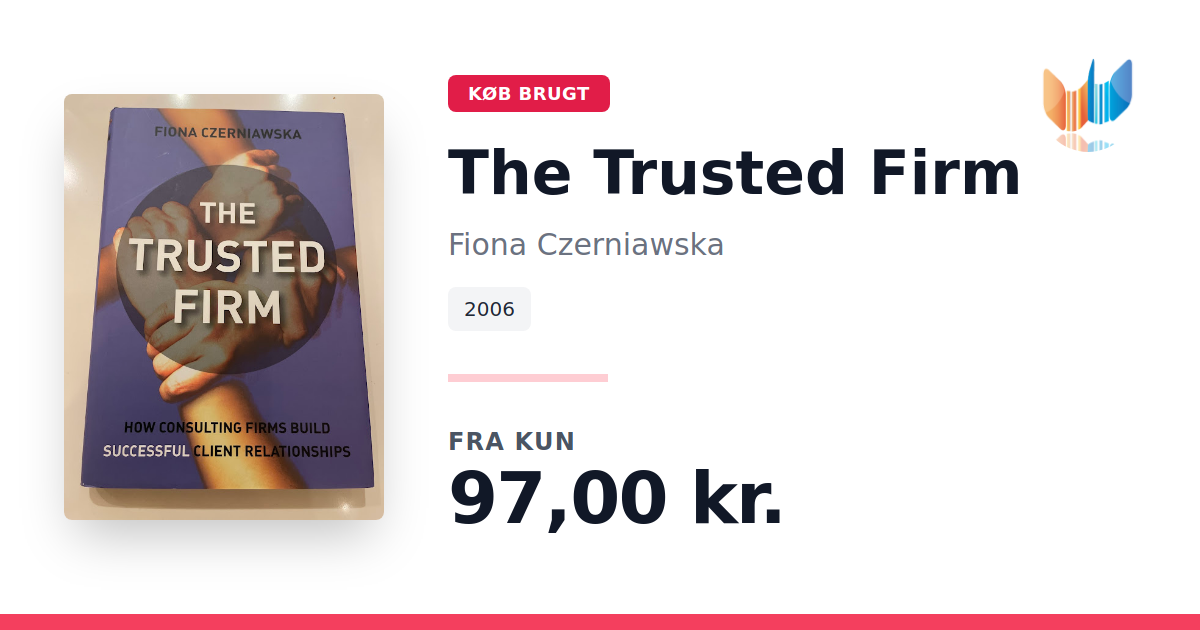 Lige nu kan du købe "The Trusted Firm" af Fiona Czerniawska til kun 97,00 kr. Bogen du ser her er brugt, og i perfekt stand. Vi har i øjeblikket kun et enkelt eksemplar til salg af "The Trusted Firm", så slå til mens du kan!