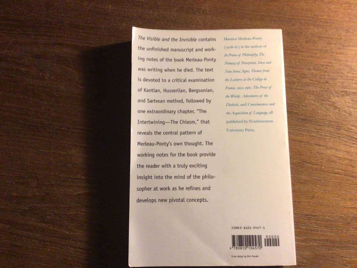 Lige nu kan du købe "The Visible and the Invisible" af Maurice Merleau-Ponty til kun 100,00 kr. Du sparer hele 58% af nyprisen! Bogen du ser her er brugt, og i perfekt stand. Vi har i øjeblikket kun et enkelt eksemplar til salg af "The Visible and the Invisible", så slå til mens du kan!
