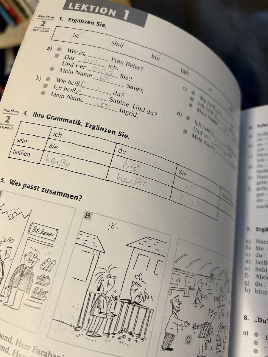 I starten af bogen er der skrevet løsningsforslag med blyant. Se billede. Men det meste af opgavebogen er ubrugt.