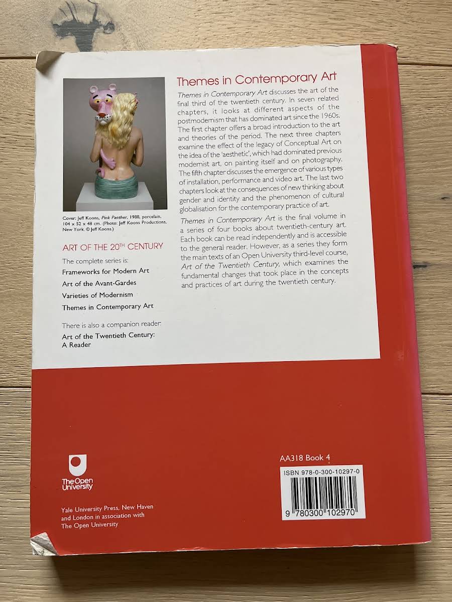Gillian Perry og Paul Woods Themes in Contemporary Art fra 2004 undersøger kunstens udvikling i den sidste tredjedel af det 20. århundrede. Bogen på 326 sider udgives i paperback og er skrevet på engelsk. I syv sammenhængende kapitler udforskes postmodernismens mangfoldige aspekter, der har domineret kunstscenen siden 1960’erne. Hvert kapitel fokuserer på en central tematik inden for bevægelsens udvikling og indflydelse.