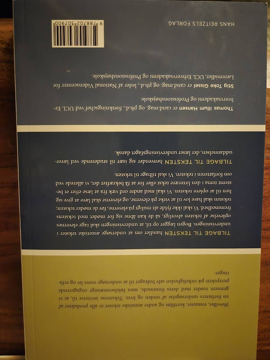"Tilbage til teksten" udforsker, hvordan æstetiske tekster kan indgå som et centralt element i undervisningen. Forfatterne Thomas Illum Hansen og Stig Toke Gissel argumenterer for, at elevernes personlige møde med tekstens fremmedhed bør få lov at spille en afgørende rolle. I stedet for at overbebyrde eleverne med forudbestemte temaer og forudindtagelser, opfordres de til at lade teksten virke på dem og åbne op for nye oplevelser og fortolkninger. Med en tilgang, der prioriterer elevens umiddelbare engagement med den litterære tekst, tilbyder bogen et frisk perspektiv på, hvordan man kan genoplive interessen for læsning. "Tilbage til teksten" er især relevant for studerende på læreruddannelsen, der ønsker at styrke deres forståelse af, hvordan æstetiske tekster kan fordybe elevers oplevelser og fremme en mere nuanceret tilgang til danskfaget.