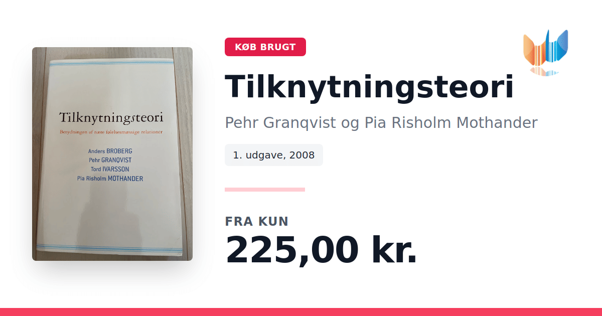 Lige nu kan du købe "Tilknytningsteori" af Pehr Granqvist og Pia Risholm Mothander til kun 225,00 kr. Bogen du ser her er brugt, og i perfekt stand. Vi har i øjeblikket 2 eksemplarer til salg af "Tilknytningsteori", så husk at se de forskellige udgaver.