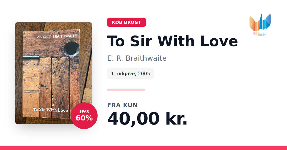 Udvalgt som BBC’s Between the Covers Big Jubilee Read. "Et skelsættende værk i kampen for racelighed" - The Guardian. I 1945 søger Rick Braithwaite, en intelligent og højtuddannet tidligere RAF-pilot, job som ingeniør i Storbritannien. Hans drømme knuses, da han indser, at han, som sort mand fra British Guiana, afvises på grund af sin hudfarve. I desperation tager han imod en stilling som lærer på en hård skole i Londons East End, overladt til sig selv foran en klasse uregerlige teenagere. Uden erfaring eller vejledning kæmper han for at indgyde disciplin, overkomme fordomme og skabe forandring. "Rørende og inspirerende" - The New York Times Med indledning af Caryl Phillips.
