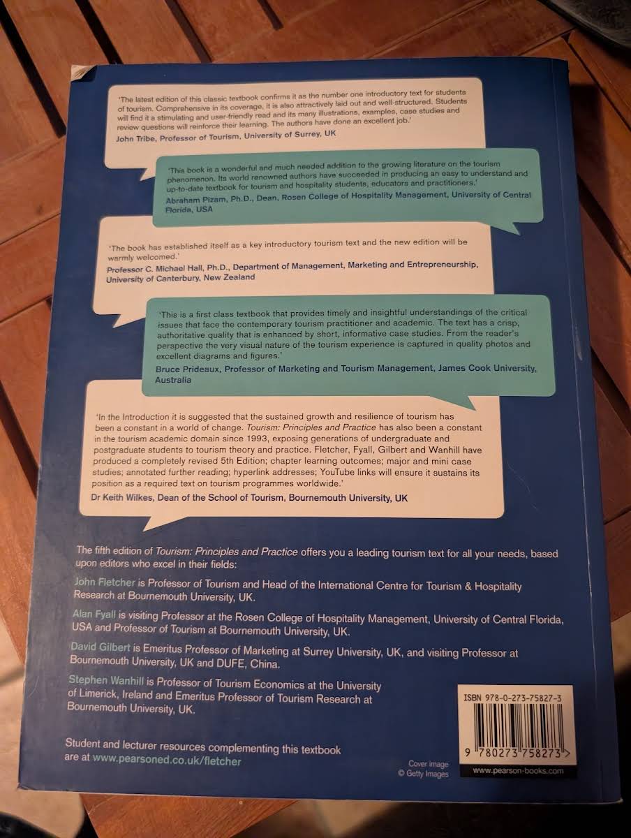 "Tourism" af John Fletcher giver en grundig indføring i turismens kerneprincipper og praksis. Bogen kombinerer tydelige teoretiske rammer med konkrete eksempler, så læseren får indsigt i alt fra efterspørgselsmønstre til destination management og bæredygtighed. Gennem globale case-studier belyses, hvordan turismen påvirker miljø, kultur og lokalsamfund verden over. Aktuelle data og illustrative eksempler understreger branchens dynamik og viser både udfordringer og muligheder i en hastigt forandrende industri. På 672 sider i paperback-format præsenterer "Tourism" den nyeste viden og forskning inden for området. Bogen er pædagogisk opbygget og egner sig både til studerende, undervisere og fagfolk, der ønsker en helhedsforståelse af turismens økonomiske, sociale og miljømæssige aspekter.