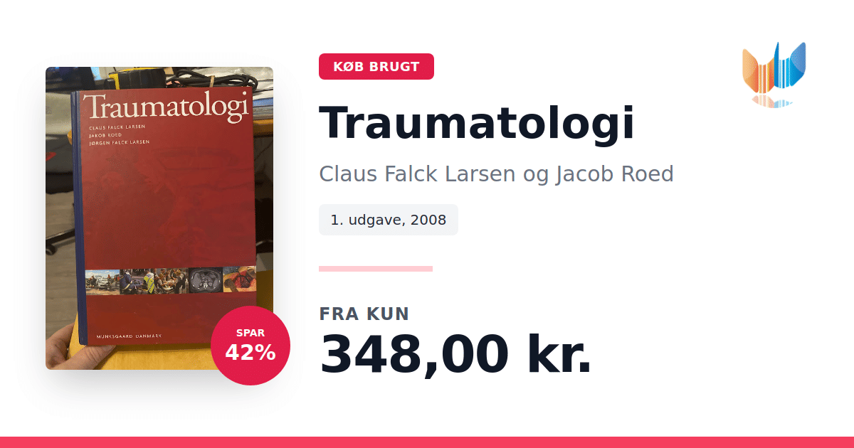 Lige nu kan du købe "Traumatologi" af Claus Falck Larsen og Jacob Roed til kun 348,00 kr. Du sparer hele 42% af nyprisen! Bogen du ser her er brugt, og i perfekt stand. Vi har i øjeblikket kun et enkelt eksemplar til salg af "Traumatologi", så slå til mens du kan!