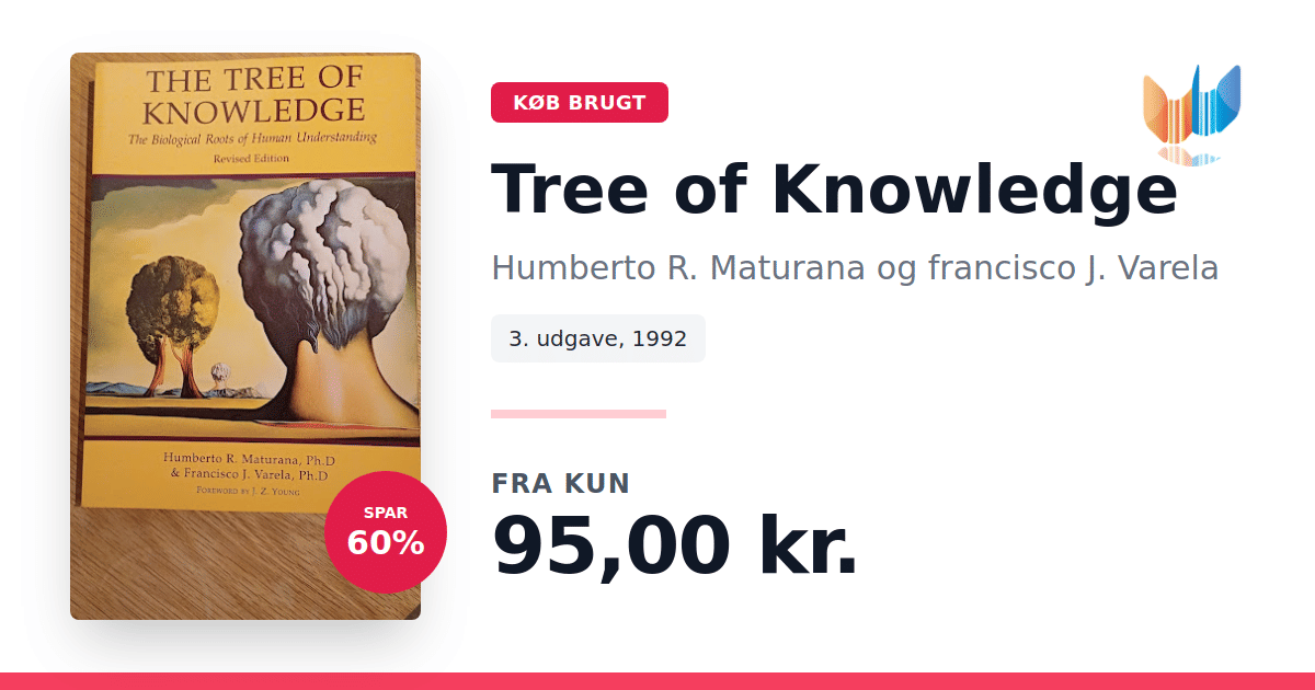 Lige nu kan du købe "Tree of Knowledge" af Humberto R. Maturana og francisco J. Varela til kun 95,00 kr. Du sparer hele 60% af nyprisen! Bogen du ser her er brugt, og i god stand. Vi har i øjeblikket kun et enkelt eksemplar til salg af "Tree of Knowledge", så slå til mens du kan!