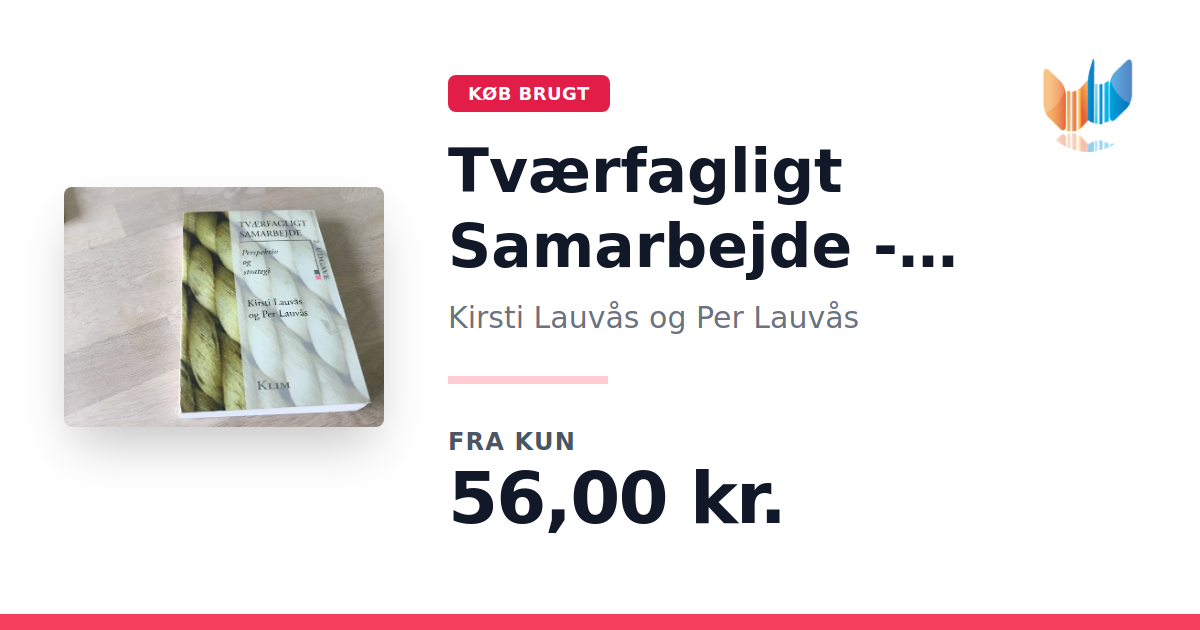 Lige nu kan du købe "Tværfagligt Samarbejde -perspektiv og strategi" af Kirsti Lauvås og Per Lauvås til kun 56,00 kr. Bogen du ser her er brugt, og i god stand. Vi har i øjeblikket kun et enkelt eksemplar til salg af "Tværfagligt Samarbejde -perspektiv og strategi", så slå til mens du kan!