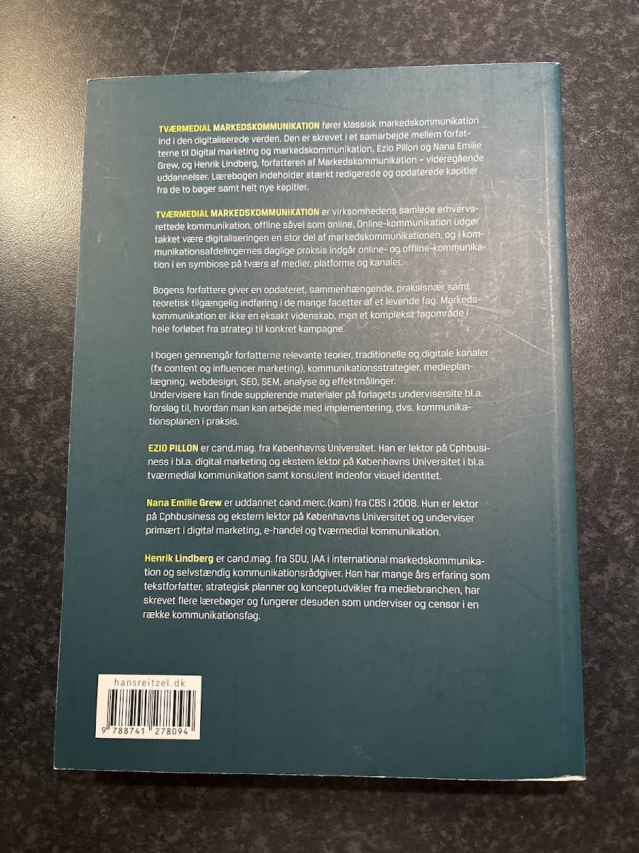 Tværmedial markedskommunikation bringer klassisk markedskommunikation ind i den digitale tidsalder og præsenterer en helhedsorienteret tilgang til virksomhedens kommunikationsindsats – både offline og online. Bogen forener opdaterede kapitler fra tidligere værker med helt nye perspektiver og illustrerer, hvordan medier, platforme og kanaler arbejder sammen i en dynamisk symbiose. Med et solidt teoretisk fundament og konkrete eksempler dykker forfatterne ned i alt fra kommunikationsstrategi og medieplanlægning til webdesign, SEO, SEM og effektmålinger. Indholdet afspejler en praksisnær tilgang, der gør det muligt at forstå og anvende teorierne i det virkelige arbejde med både traditionel og digital markedskommunikation. Forfatterne Ezio Pillon, Nana Emilie Grew og Henrik Lindberg, som alle besidder en indgående ekspertise inden for området, formår at gøre komplekse sammenhænge tilgængelige. Denne lærebog er et uundværligt redskab for studerende og undervisere på videregående uddannelser, der ønsker at få en dybdegående forståelse af, hvordan kommunikationen transformeres og optimeres i den moderne medieverden.