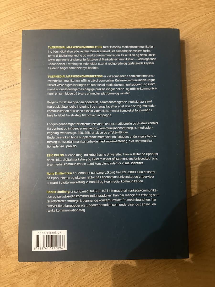 Tværmedial markedskommunikation bringer klassisk markedskommunikation ind i den digitale tidsalder og præsenterer en helhedsorienteret tilgang til virksomhedens kommunikationsindsats – både offline og online. Bogen forener opdaterede kapitler fra tidligere værker med helt nye perspektiver og illustrerer, hvordan medier, platforme og kanaler arbejder sammen i en dynamisk symbiose. Med et solidt teoretisk fundament og konkrete eksempler dykker forfatterne ned i alt fra kommunikationsstrategi og medieplanlægning til webdesign, SEO, SEM og effektmålinger. Indholdet afspejler en praksisnær tilgang, der gør det muligt at forstå og anvende teorierne i det virkelige arbejde med både traditionel og digital markedskommunikation. Forfatterne Ezio Pillon, Nana Emilie Grew og Henrik Lindberg, som alle besidder en indgående ekspertise inden for området, formår at gøre komplekse sammenhænge tilgængelige. Denne lærebog er et uundværligt redskab for studerende og undervisere på videregående uddannelser, der ønsker at få en dybdegående forståelse af, hvordan kommunikationen transformeres og optimeres i den moderne medieverden.