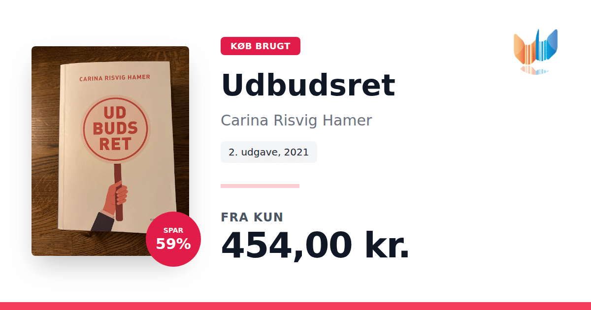 Lige nu kan du købe "Udbudsret" af Carina Risvig Hamer til kun 454,00 kr. Du sparer hele 59% af nyprisen! Bogen du ser her er brugt, og i perfekt stand. Vi har i øjeblikket kun et enkelt eksemplar til salg af "Udbudsret", så slå til mens du kan!
