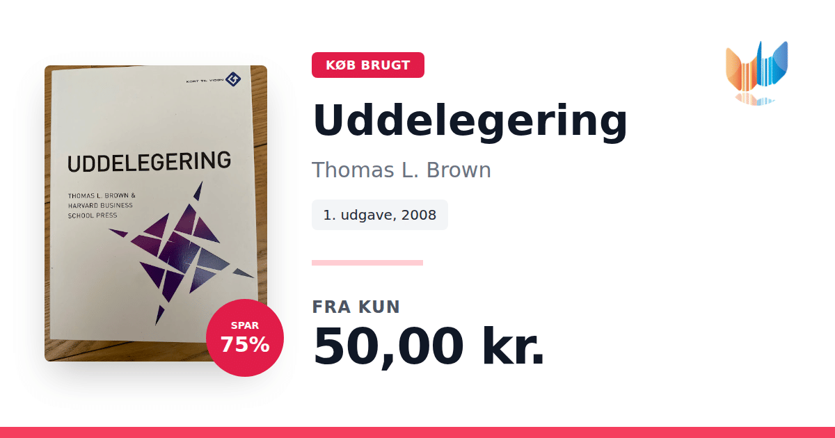 Lige nu kan du købe "Uddelegering" af Thomas L. Brown til kun 50,00 kr. Du sparer hele 75% af nyprisen! Bogen du ser her er brugt, og i perfekt stand. Vi har i øjeblikket kun et enkelt eksemplar til salg af "Uddelegering", så slå til mens du kan!