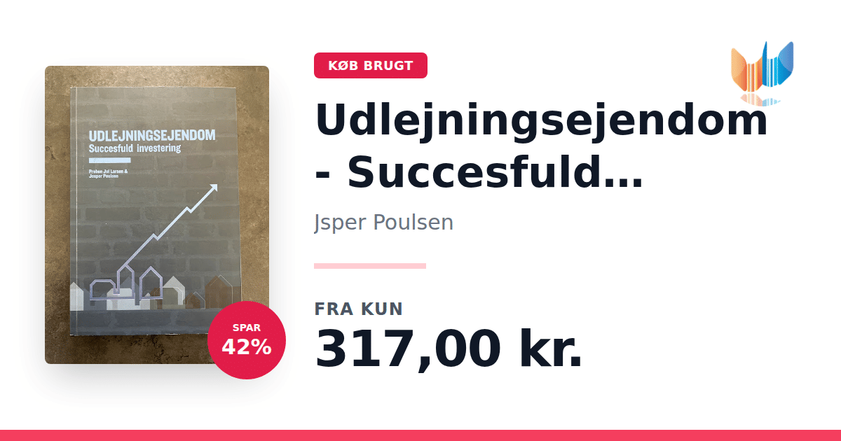 Lige nu kan du købe "Udlejningsejendom - Succesfuld investering" af Jsper Poulsen til kun 317,00 kr. Du sparer hele 42% af nyprisen! Bogen du ser her er brugt, og i perfekt stand. Vi har i øjeblikket kun et enkelt eksemplar til salg af "Udlejningsejendom - Succesfuld investering", så slå til mens du kan!