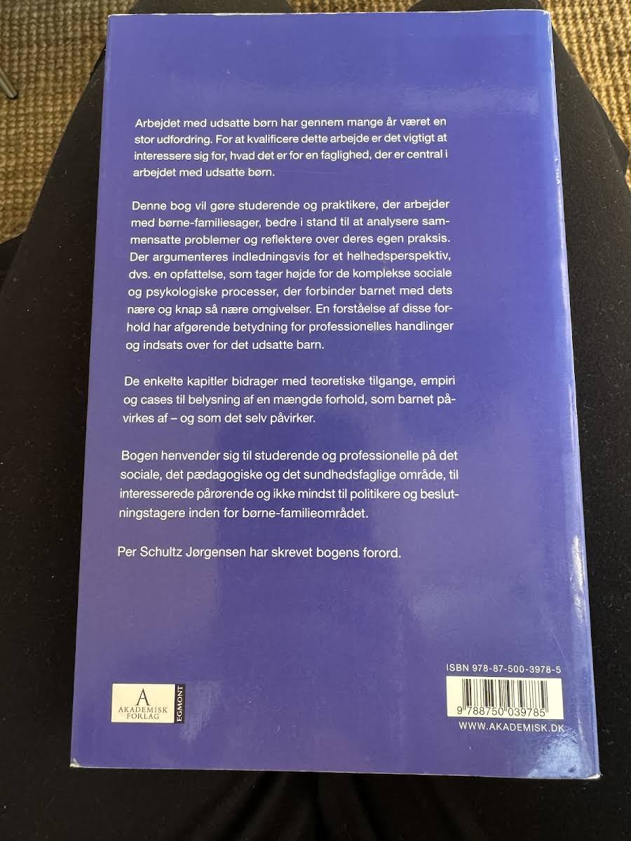 Udsatte børn tilbyder et helhedsorienteret blik på de komplekse sammenhænge, der påvirker udsatte børn og deres opvækst. Bogen understreger vigtigheden af at forstå de sociale, psykologiske og relationelle processer, som forbinder barnet med dets nærmeste miljø, og giver dermed et solidt grundlag for både refleksion og praksis. Gennem en kombination af teoretiske perspektiver, empiriske undersøgelser og illustrative cases fremhæver bogen, hvordan forskellige forhold interagerer og formar barnets livssituation. Udsatte børn henvender sig til studerende, praktikere, pårørende samt beslutningstagere, der arbejder med eller interesserer sig for børne-familieområdet, og giver dermed et værdifuldt redskab til at skabe bedre forståelse og handling i forhold til udsatte børn.