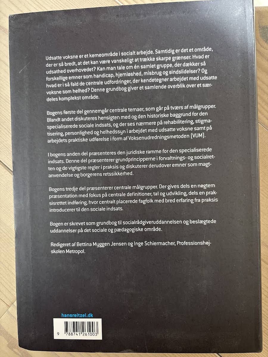 "Udsatte voksne og socialt arbejde" er en grundbog, der giver et bredt og nuanceret overblik over arbejdet med udsatte voksne – et område præget af stor mangfoldighed og komplekse problemstillinger. Hvad indebærer udsathed, og hvordan forenes emner som handicap, hjemløshed, misbrug og psykiske lidelser under én faglig paraply? Bogen åbner for disse spørgsmål og sætter scenen for en dybdegående diskussion om de teoretiske og praktiske aspekter af arbejdet med samfundets mest sårbare grupper. I første del præsenteres centrale temaer, der rækker på tværs af målgrupper og belægger den specialiserede sociale indsats historisk og praktisk. Anden del lægger vægt på den juridiske ramme, med en gennemgang af socialrettens grundprincipper, herunder emner som magtanvendelse og borgernes retssikkerhed. Endelig belyser den tredje del specifikke målgrupper gennem både nøgterne definitioner og praksisnære indsigter fra erfarne fagfolk. Samlet set tilbyder "Udsatte voksne og socialt arbejde" et solidt fundament for studerende og praktikere inden for social- og pædagogisk arbejde.