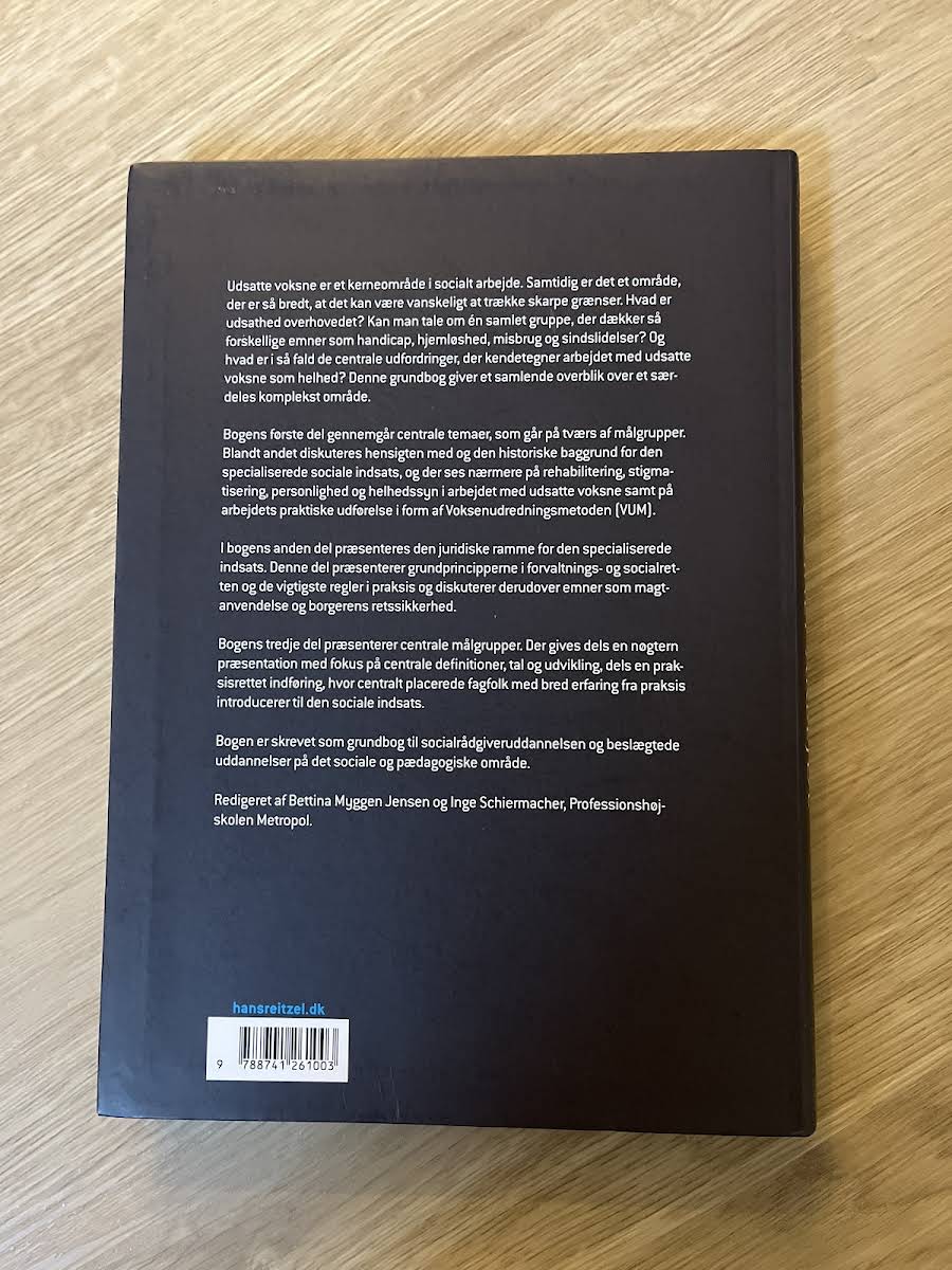 "Udsatte voksne og socialt arbejde" er en grundbog, der giver et bredt og nuanceret overblik over arbejdet med udsatte voksne – et område præget af stor mangfoldighed og komplekse problemstillinger. Hvad indebærer udsathed, og hvordan forenes emner som handicap, hjemløshed, misbrug og psykiske lidelser under én faglig paraply? Bogen åbner for disse spørgsmål og sætter scenen for en dybdegående diskussion om de teoretiske og praktiske aspekter af arbejdet med samfundets mest sårbare grupper. I første del præsenteres centrale temaer, der rækker på tværs af målgrupper og belægger den specialiserede sociale indsats historisk og praktisk. Anden del lægger vægt på den juridiske ramme, med en gennemgang af socialrettens grundprincipper, herunder emner som magtanvendelse og borgernes retssikkerhed. Endelig belyser den tredje del specifikke målgrupper gennem både nøgterne definitioner og praksisnære indsigter fra erfarne fagfolk. Samlet set tilbyder "Udsatte voksne og socialt arbejde" et solidt fundament for studerende og praktikere inden for social- og pædagogisk arbejde.